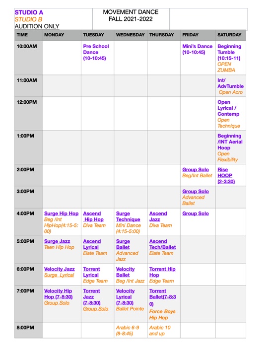We are so excited to start our fall schedule and see our dancers back in the studio. See you in class!